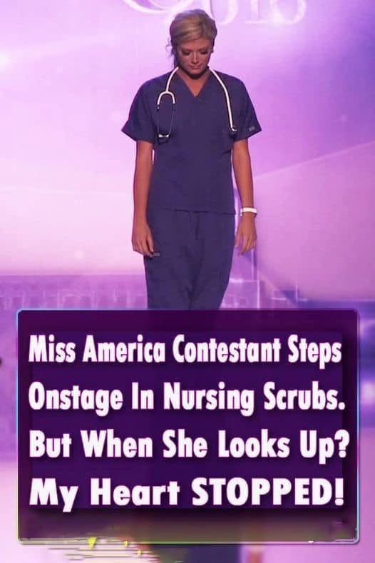 There had never been an entrance like Kelley Johnson’s that night. Although her competitors wowed in ornate costumes, Kelley made a statement by entering the stage in plain old nursing scrubs. The crowd was probably taken aback since they were anticipating a more conventional presentation. Instead of a dance or song, what came next was an emotionally wrenching speech that everyone in the audience will never forget.